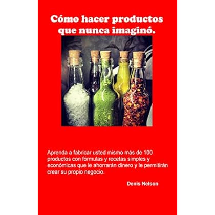 Aprenda a fabricar usted mismo más de 100 productos con fórmulas y recetas simples y económicas que le ahorrarán dinero y le permitirán crear su propio negocio. Formato=Versión Kindle. Tamaño del archivo=3023 KB. Longitud de impresión=158. Uso simultáneo de dispositivos=Sin límite. Editor=Denis Nelson Moncada; Edición: Primera Edición (12 de mayo de 2014). Vendido por=Amazon Media EU S.à r.l.. Idioma=Español. ASIN=B00KBB7CXG. Word Wise=No activado. Tipografía mejorada=Activado. Valoración media de los clientes=4.0 de un máximo de 5 estrellas 2 opiniones de clientes. Clasificación en los más vendidos de AmazonArtesanía, artes decorativas y manualidadesCocina, bebida y hospitalidadArtesanía, artes decorativas y manualidades=n.° 44.990 de Pago en Tienda Kindle (Ver el Top 100 de pago en Tienda Kindle) .zg_hrsr { margin: 0; padding: 0; list-style-type: none; } .zg_hrsr_item { margin: 0 0 0 10px; } .zg_hrsr_rank { display: inline-block; width: 80px; text-align: right; } n.° 86 en Tienda Kindle > eBooks Kindle > Hogar, manualidades y estilos de vida > n.° 455 en Tienda Kindle > eBooks Kindle > Hogar, manualidades y estilos de vida > n.° 684 en Libros > Hogar, manualidades y estilos de vida >.son geniales solo hay que tener un poso de tiempo y paciencia y los resultados son geniales os recomiendo mucho. Te explica de un podo practico como antaño se utilizaban todos los desperdicios de una casa para realizar subproductos que ayudaran a la vida cotidiana.Hoy en día vamos al súper y lo compramos envasado.