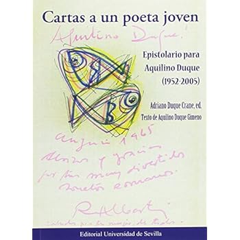 Reseña del editor Cartas a un poeta joven recoge una selección de la correspondencia mantenida entre Aquilino Duque y varios escritores de relieve entre los años de 1952 y 2005. A través del contacto con autores como Vicente Aleixandre, Rafael Alberti, Jorge Guillén, José María Pemán, José Ángel Valente, María Zambrano, o Eugenio Montes, entre otros, el presente libro recoge la etapa de formación de la obra poética de Aquilino Duque y de qué modo sus viajes por Asia, América, África y Europa incidirían en su visión poética. A partir de sus tangencias con Juan Ramón Jiménez, el epistolario refleja las inquietudes y los avatares de alguien que, sin otras credenciales que las de poeta joven, quería hacerse una idea lo más completa posible del mundo en la segunda mitad del siglo XX. Biografía del autor Aquilino Duque Gimeno, nacido en Sevilla el 6 de enero de 1931, Licenciado en Derecho por la Universidad de Sevilla, amplió estudios en las Universidades de Cambridge (Trinity Hall) y Southern Methodist University de Dallas, Tejas. Narrador, poeta y ensayista, Aquilino Duque es autor de libros como De palabra en palabra (Premio Leopoldo Panero del Instituto de Cultura Hispánica y Fastenrath de la Real Academia Española) o El Mono azul (finalista del premio Nadal 1973 y Premio Nacional de Literatura 1974). Es autor también de obras fundamentales como El mito de Doñana y El suicidio de la Modernidad. Desde 1981 es individuo de número de la Real Academia Sevillana de Buenas Letras. De 1962 a 1975 residió sucesivamente en Ginebra y en Roma, donde trabajó como funcionario internacional para varios organismos internacionales. Adriano Duque Crane es profesor de literatura medieval en la Universidad de Villanova en Filadelfia (EEUU). Ha publicado varios trabajos sobre jardines medievales o las relaciones entre cristianos y musulmanes en la temprana Edad Media.Tapa blanda=212 páginas. Editor=Editorial Universidad de Sevilla-Secretariado de Publicaciones; Edición: 1 (20 de junio de 2016). Colección=Colección Literatura. Idioma=Español. ISBN-10=844721754X. ISBN-13=978-8447217540. Valoración media de los clientes=Sé el primero en opinar sobre este producto. Clasificación en los más vendidos de AmazonDiarios y cartasBiografías y autobiografíasLiteratura y ficción=nº416.625 en Libros (Ver el Top 100 en Libros) .zg_hrsr { margin: 0; padding: 0; list-style-type: none; } .zg_hrsr_item { margin: 0 0 0 10px; } .zg_hrsr_rank { display: inline-block; width: 80px; text-align: right; } n.° 538 en Libros > Biografías, diarios y hechos reales > n.° 12910 en Libros > Biografías, diarios y hechos reales > n.° 103434 en Libros >.